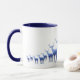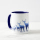 Cette tasse est affichée à l'extérieur blanc avec un joli cerf/wapiti bleu entendu imprimé sur le bord inférieur de la tasse de droite à gauche graduant en taille comme s'ils marchent au loin. L'intérieur et la poignée sont bleu marine. Customisez cette tasse ou achetez comme prévu. Image stock avec l'aimable autorisation de www.freepik.com