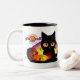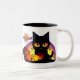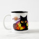 Montrez votre amour pour Halloween avec cette tasse à café mignonne à deux tons. Cette tasse à café présente un chat noir, des citrouilles et le texte "Halloween trick or treat".