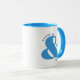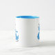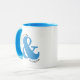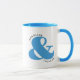Mug à café couple bleu et blanc personnalisable avec une police moderne, parfait comme cadeau d'anniversaire.