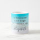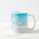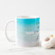 Une citation de retraite, sur une image emblématique de la plage et de la mer, est l'arrière - plan de ce cadeau de retraite personnalisé. Blues et couleurs sable. Votre nom est facilement entré dans la tasse à café personnalisée ou retiré complètement.