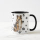 Un beau chien rugueux de Collie est assis sur les deux côtés de cette tasse. Le texte entre les deux images dit "Le 8ème jour, Dieu a créé le CHIEN COLLIE et l'a appelé TRÈS BIEN". Les images de chien et la bannière blanche ovale contenant les champs de texte sont placées sur un arrière - plan blanc avec des empreintes de pattes noirs.