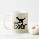Silhouette d'un vélociraptor avec le texte Dino Expert. Café Mug pour les amateurs de dinosaures.
