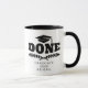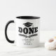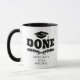 Cute tasse à café de graduation personnalisée avec un casquette diplômé, des branches, le prénom de l'étudiant, et le mot "FAIT" en gras typographie moderne. Ajoutez les détails du diplômé en cliquant sur le bouton "Personnaliser" ci-dessus avec l'année où ils ont obtenu leur diplôme