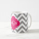 Mug Dk Grey Lg Chevron Raspberry Quatrefoil 3 Monogram