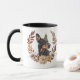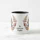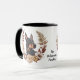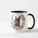 Une jolie couronne d'automne dans les tons marron, brun et crème de cannelle entoure l'aquarelle d'un beau chien Doberman Pinscher. L'image est imprimée deux fois sur la tasse, avec votre texte personnalisé entre eux.