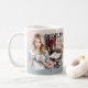 Mug avec une aquarelle illustrant une jeune femme avec du café. Donner du pouvoir à la créativité à toute femme. La créativité s'exprime de différentes manières.