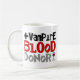 Expression, "donneur de sang de vampire" dans la police infâme noire et rouge. La croix médicale noire dans le coin supérieur et un verre de vin a rempli de sang situé dans le coin diagonal opposé.