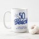 Célébrez cet anniversaire spécial avec une tasse 50 Is A Beach Birthday ! Doodle à main lunaire 50th Beach Anniversaire Mug