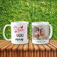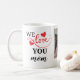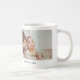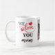 Cette tasse élégante et moderne comprend deux coeurs rouges mignons et une photo avec le texte vibrant "We love you maman". Un cadeau merveilleux pour ta mère. Faites-lui savoir que vous l'aimez et qu'on vous en rappelle chaque fois qu'elle sirote son café ou son thé. Customisez avec le nom de l'enfant pour le rendre unique et personnel.