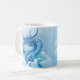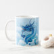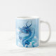 Tasse à café dans un dragon chinois féroce, dans les tons bleu et blanc indigo, émergeant des nuages