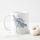 Conception fantaisiste originale par Sandra T. Gale d'une libellule colorée au-dessus d'un cercle violet pâle. Peut être personnalisé et fait le vôtre.