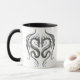 Deux dragons tribaux se font face dans cette conception symétrique agressive. Les serpents à ailes ont l'aspect de l'moulage hors du fer solide qui crée un regard 3D renversant. La texture métallique et la couleur argentée profonde donne à cette conception de tasse un regard élégant.