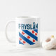 Le drapeau de la province de Friesland ou le drapeau frisien (Frisian de l'Ouest : Flamme de Fryske; Hollandais : Drapeau frisois), est le drapeau officiel de la province de Pays-Bas de la Frise. Il se compose de quatre bandes diagonales bleues et trois bandes blanches; dans les bandes blanches sont un total de sept pompeblêden rouges, feuilles du nénuphar jaune, qui peut ressembler aux coeurs, mais selon les instructions officielles "ne devrait pas être en forme de coeur". Les sept seblatts rouges (ou pompeblêden, comme on les appelle en frison de l'Ouest) sont une référence aux "pays de la mer" frisonnes au Moyen Age : [1] régions indépendantes le long de la côte d'Alkmaar à l'Ouest qui étaient alliés contre les Vikings. Il n'y a jamais eu précisément sept régions distinctes, mais le chiffre sept a probablement la connotation "beaucoup". Certaines sources soutiennent cependant qu'il y a eu sept terres frisonnes : la Frise de l'Ouest, Westergoa, Eastergoa, Hunsingo, Fivelingo, Emsingo et Jeverland.