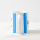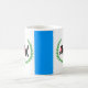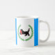 Mug avec le drapeau de l'oblast d'Irkoutsk (oblast d'Irkoutskaya); drapeau avec trois bandes horizontales de bleu et blanc, avec une illustration du tigre noir stylisé tenant un sable rouge dans la bouche au centre