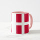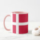 Le drapeau du Danemark est rouge avec une croix scandinave blanche qui s'étend jusqu'aux bords du drapeau ; la partie verticale de la croix est déplacée sur le côté du toit #denmark #danish #patriotic #flag #scandinavian