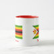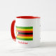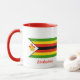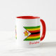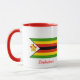 Le drapeau du Zimbabwe a été adopté le 18 avril 1980. L'oiseau de pierre de savon décrit sur le drapeau représente a [statuette] d'un oiseau trouvé aux ruines du grand Zimbabwe. L'oiseau symbolise l'histoire du Zimbabwe ; l'étoile rouge sous elle symbolise la lutte révolutionnaire pour la libération et la paix.