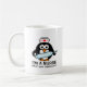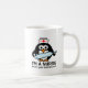 Tasse drôle avec une infirmière mignonne pingouin et citation. Je suis infirmière, quelle est votre superpouvoir? Texte et couleurs personnalisables. Idée drôle de cadeau pour la semaine des infirmières, diplômée de l'école d'infirmières ou infirmières autorisées. Caricature d'oiseau animal avec aiguille de seringue.