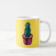 Drôle tasse de cactus avec un dessin d'encre de couleur numériquement représentant un plante de cactus dans une casserole remplie d'une étrange soupe alien rose. Ce design trippy amusant a une sensation psychédélique en raison de ses couleurs jaunes, vertes, roses et violettes bizarres.