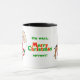 C'est une tasse de vacances mignonne et amusante qui fera sourire ! Chaque côté montre un Père Noël exaspéré piqué par un chien. Le texte rouge et vert au milieu dit "Oh bien, Joyeux Noël de toute façon !"