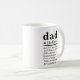 Célébrez votre héros de tous les temps avec cette chatte de définition papa hilarante et réconfortante ! Parfait pour la Fête des pères, les anniversaires, Noël, ou simplement parce que, cette tasse présente une définition ludique du "papa", de style dictionnaire, qui frappe toutes les bonnes notes, depuis le tueur des araignées jusqu'au caisson des blagues affreuses. Customisez et personnalisez le texte pour placer votre propre spin drôle. Idéal pour les cadeaux de la Fête des Pères, les cadeaux d’anniversaire de papa amusants, les peluches de Noël ou les tasses de bureau pour les papas. Qu'il sirote son café du matin ou qu'il l'affiche fièrement sur son bureau, cette tasse ne manquera pas de lui faire sourire.
