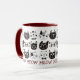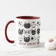 Cette tasse a un motif de mignons visages de chats de dessins animés en noir et blanc. En bas se trouve le texte répété "Meow" en rouge foncé. Parfait pour l'amoureux des chats dans votre vie ! *Merci à Soul Cliparts World pour les images de ce design.