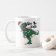 Un drôle de design de vacances hivernales de dinosaure T-rex mignon enchevêtré dans les lumières de Noël, qui dit : "Rex the Halls"