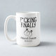 Célébrez le "OUI" tant attendu avec cette drôle de tasse de fiançailles présentant la phrase en gras "F*cking Finally", associée à de beaux anneaux de fiançailles et aux noms et date personnalisés du couple.