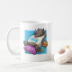 Prenez une pause et prenez un verre dans cette tasse, avec un joli rhinocéros sur un matelas gonflable ou un lilo ; un rhinocéros amusant, profitant des ondes estivales, se rafraîchissant sur un rose vif gonflable dans la piscine. Prêt à faire la fête, avec canard en caoutchouc préféré et une boisson rafraîchissante sur un plateau flottant. Utilisez "Personnalisez ce modèle" pour modifier le texte "Apportez-le facilement" et faire un cadeau unique et customisé; les changements de texte sont reflétés de part et d'autre.