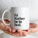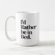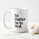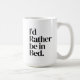 Profitez d'un slogan fantaisiste "Je préférerais être au lit" sur cette tasse de café contemporaine en noir et blanc, avec des imprimés des deux côtés. Disponible en capacité de 15 onces avec option pour une taille de 11 onces, cette tasse est commodément micro-ondes et lave-vaisselle coffre.