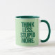 Drôle Texte Personnalisé Penser Moins Stupide Plus De Mug Vert.