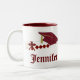 Belle tasse cadeau pour votre senior diplômé préféré, avec des graphismes élégants d'un diplôme et casquette de mortier rouge. Le texte rouge indique Classe de, et le texte rouge personnalisable lit l'année et le nom du diplômé. Personnalisez-vous pour vous-même ou pour votre groupe favori.