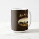 Deux caribous mâles s'affrontent durant le rut automnal dans l'extrême nord tandis que le soleil se couche à l'arrière-plan. Texte lisant "Alaska" apparaissant également ; ainsi qu'un espace pour ajouter votre propre texte.