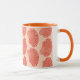 Mug dans un motif imprimé en bloc, basé sur une coquille de pétoncle, en orange de corail sur un arrière - plan de corail pastel