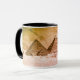 COFFEE MUG - Pyramides antiques en Egypte art vintage. La vue sur toutes les pyramides en ligne souligne la magnificence de la région. Le sommet de la Grande Pyramide est toujours recouvert de bureaux en pierre déco plate et imaginons, quelle vue extraordinaire elle a dû avoir à l'époque de leur apogée. Bien que les pyramides soient situées dans le désert, avec l'expansion du Caire, elles font partie de la ville elle-même. Il y a de nombreux objets historiques extraordinaires et des merveilles architecturales dans la région, comme la statue de Sphinx. Les anciennes civilisations du monde. Série Voyages/Architecture - Le Caire, Egypte. Photographie originale/Art/Design par work4dream.