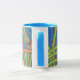 Tasse blanche avec sérigraphie originale design égyptien, poignée bleue et jante