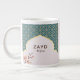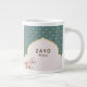 Mug de mariage Arabesque élégant – Arche dorée et sarcelle foncée avec magnolia aquarelle | Grand mug de luxe pour la mariée, le marié, anniversaire, cadeau de douche de mariage et d'Eid.