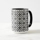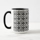 A sophisticated black arabesque geometric pattern featuring symmetrical ornamental details.