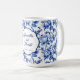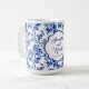 Une tasse mariage à l'élégante toile fleurie bleue et blanche.