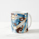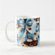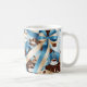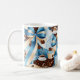 Mug Élégant café bleu ruban arcs monogramme