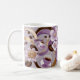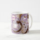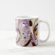 Cette tasse à café présente un design chic et rafraîchissant qui met en valeur l'art sur le thème du café avec des fleurs et des rubans. La motif comprend des tasses à café vapeur et des grains de café, élégamment arrangés sur un arrière - plan de lavande douce aux textures rayées subtiles. Les rubans dorés et lavande luxueux, qui accentuent le design, créent un sentiment de sophistication et de charme. Au centre, un monogramme encastré dans un emblème à la lavande peut être personnalisé avec des initiales, ce mug est un choix idéal pour un cadeau customisé ou un ajout élégant à la collection d’amoureux du café.