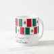 Elégant Welcome MEXICO FLAG Coffee Mug avec texte personnalisable pour créer votre propre message d'accueil et/ou ajouter votre nom, par ex. Bienvenue dans notre maison d'hôtes, etc. La typographie élégante du script et le drapeau de MEXICO dans un motif carrelé font de cette tasse de café MEXICAN FLAG un ajout élégant pour accueillir les invités dans votre maison, votre maison d'hôtes ou à votre entreprise. Disponible dans d'autres drapeaux et dans d'autres couleurs simples et populaires. Choisissez parmi une large sélection de modèles d'accueil de Berean Designs qui vous amèneront votre marque d'entreprise à un autre niveau.
