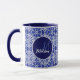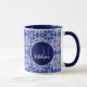 Élégante tasse de monogramme bleu initial. Ce design bleu présente votre nom et prénom monogrammé en typographie moderne gris clair imprimé sur un arrière - plan gris-bleu géométrique à motif. Cet élégant design branché est parfait pour votre chambre, chambre familiale ou salon. Personnalisez ce coussin élégant avec l'initiale monogrammée de votre famille et le nom de famille pour créer votre propre oreiller à lancer personnalisé. Vous pouvez modifier toutes les couleurs et polices de texte, cliquez pour customiser plus loin sous la zone de personnalisation de texte, ce qui vous amènera dans l'outil de conception. Un cadeau unique pour l'anniversaire, les fêtes et toute occasion spéciale. Que ce soit pour les valentines jour, Noël ou comme cadeau en général, il fait une grande idée cadeau
