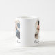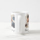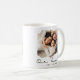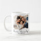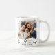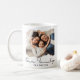 Ce design comprend une photo de famille encadrée avec un effet de papier déchiqueté élégant, lui donnant un look moderne et élégant. Sous la photo, l'expression "Notre Famille" est écrite dans une police chic et cursive, associée à un nom de famille personnalisable en majuscules élégantes. La photo et le nom sont entièrement personnalisables, faisant de cette tasse un souvenir unique ou un cadeau réfléchi pour les proches.