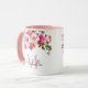 Mug personnalisé à motif floral de rose rose girly élégant. Caractéristiques, roses en aquarelle couleur rose clair et rose chaud, arrangement floral botanique avec feuillage sur fond blanc. Vous pouvez personnaliser avec votre nom et monogramme initial avec une jolie calligraphie manuscrite élégante. Ce mug féminin fait le cadeau parfait pour elle pour un anniversaire, une douche de mariée, un mariage, Noël, les vacances ou toute autre occasion. Si vous avez besoin d'aide ou d'articles assortis, veuillez contacter le concepteur.