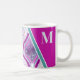 Fille Élégante Turquoise Fuchsia Agate Monogramme initial de café Mug. Les cristaux et les géodes continuent d'être une tendance favorite ! Cette impression présente et une image rapprochée d'une roche de géode turquoise et violette (magenta) vibrante, avec de petits cristaux. Ajoutez votre initiale pour en faire la vôtre.