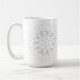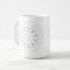 Mandala design avec quatre anneaux motifs. Cercle central de six segments, le cercle suivant a six ovales avec des cercles à l'intérieur. Onze petites rafales de soleil à l'intérieur de la bande qui est bordée de petits cercles. Quinze pétales de diamant tenant un cercle créent l'anneau extérieur. Design simple et élégant, reproduit de part et d'autre de la tasse.