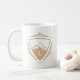Ascend to new heights every morning with this stylishly personalized coffee mug, featuring an elegant gold-tone mountain range crest within a decorative shield frame. The design can be customized with your own initial or a personalized message, making it a unique and sophisticated accessory for any home or office.