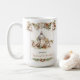 Coca chaud blanc et crème ou chocolat Noël Grand Café Mug dans le style classique mais moderne de la ferme ornée de pin, fleurs blanches de Noël, lanterne et un oiseau mignon. Personnaliser facilement le texte - Kate Eden Art