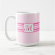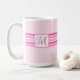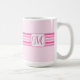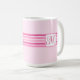 Cette tasse élégante présente des rayures roses et une initiale personnalisable à l'avant et à l'arrière.