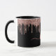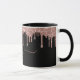 Élégante, moderne Blush Rose Rose Parties scintillant d'or Drips deux 2 Monogrammes Script sur noir personnalisé nom monogrammed mug. Doté d'un cadre de goutte à goutte de parties scintillant, grande police de caractères cursive de script monogramme à double main avec des swashes (initiales de grande taille) en couleur rose vif ou or rose sur arrière - plan noir. Facile à personnaliser. Grand cadeau féminin féminin pour petite amie, mère, anniversaire, mariage, douche nuptiale, fête et baby shower doux de 16 ans, affaires, bureau à domicile, travail professionnel et pour toute personne qui aime les jolies choses glam.